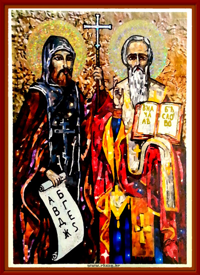 »Značenje je Sv. braće Ćirila i Metoda golemo. Oni su prvi jedan barbarski slavenski dijalekt učinili književnim jezikom, i to tako vješto, da je taj jezik kod većeg dijela Slavena postao ne samo crkveni jezik, nego je preuzeo uopće službu, koju je drugdje imao latinski jezik. Time su udarili temelje slavenske kulture. Njihovim prijevodom Svetoga pisma 863.g, koji se počinjao riječima: ‘Iskoni bě slovo…’, rodila se je slavenska knjiga.« (Hrvatska enciklopedija, Zagreb, 1942.)