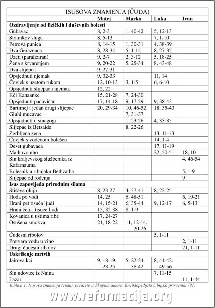 Tijekom svojeg ovozemaljskog hoda, naš Gospodin i Spasitelj Isus Krist izvodio je nebrojena čuda, od kojih su nam neka ostala zapisana u četirima Evanđeljima (Iv 21, 25). Iv 20, 31 kaže: „A ova su zapisana da vjerujete: Isus je Krist, Sin Božji, i da vjerujući imate život u imenu njegovu.“.