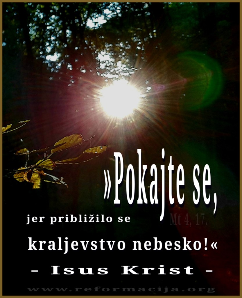 »A nakon što Ivan bijaše predan, dođe Isus u Galileju propovijedajući evanđelje o kraljevstvu Božjem i govoreći: ‘Ispunilo se vrijeme i približilo se kraljevstvo Božje! Pokajte se i vjerujte evanđelju!’« (Marko 1, 14 – 15.)