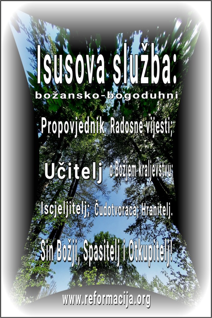 Gospodin Isus Krist je izrekao mnoge pouke od kojih su najistinitije i najbitnije sažete u »Evanđeljima«. Isusovu službu možemo sažeo opisati: božansko-bogoduhni Propovjednik Radosne vijesti; Učitelj o Božjem kraljevstvu; Iscjeljitelj; Čudotvorac; Hranitelj. Prvo i drugo (propovijedanje i poučavanje) je bit njegove službe, a zadnje tri su znaci i potvrde službe.